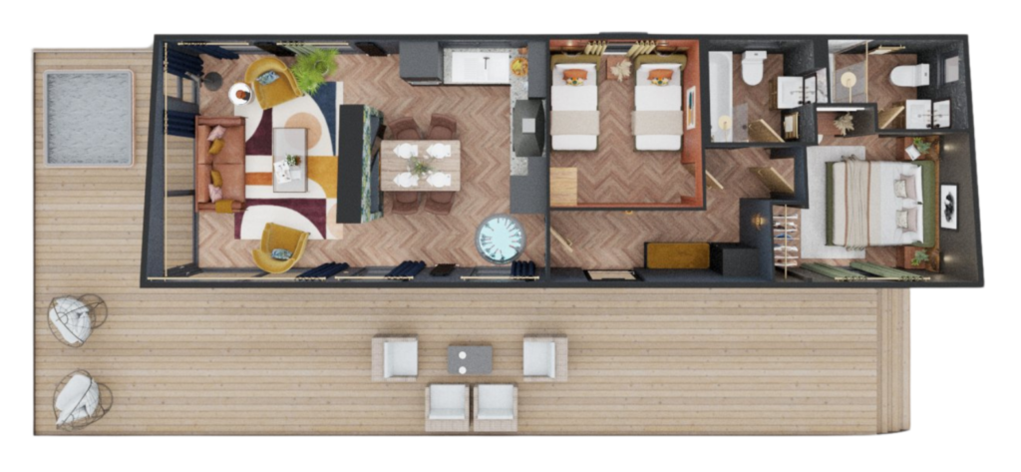 The Kempton redefines luxury, offering a holiday home that is both beautiful and functional. Step inside and you'll find a space designed for comfort and modern living. It comes in a range of sizes and can be configured with either two or three bedrooms, making it a perfect fit for a variety of needs. The high-quality finish is evident throughout, with a range of integrated appliances in the kitchen, including a dishwasher, fridge freezer, microwave, oven, hob, and extractor.