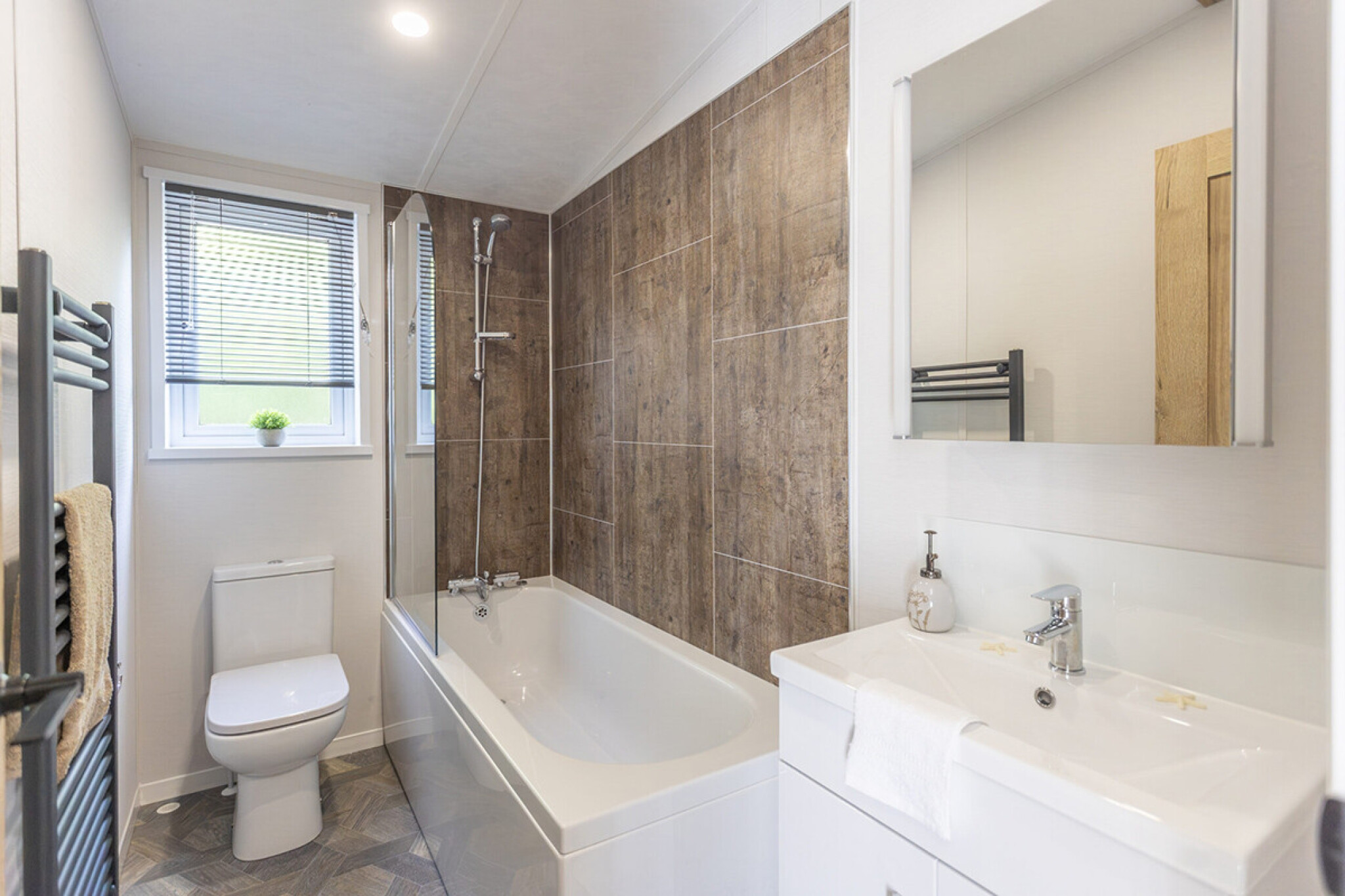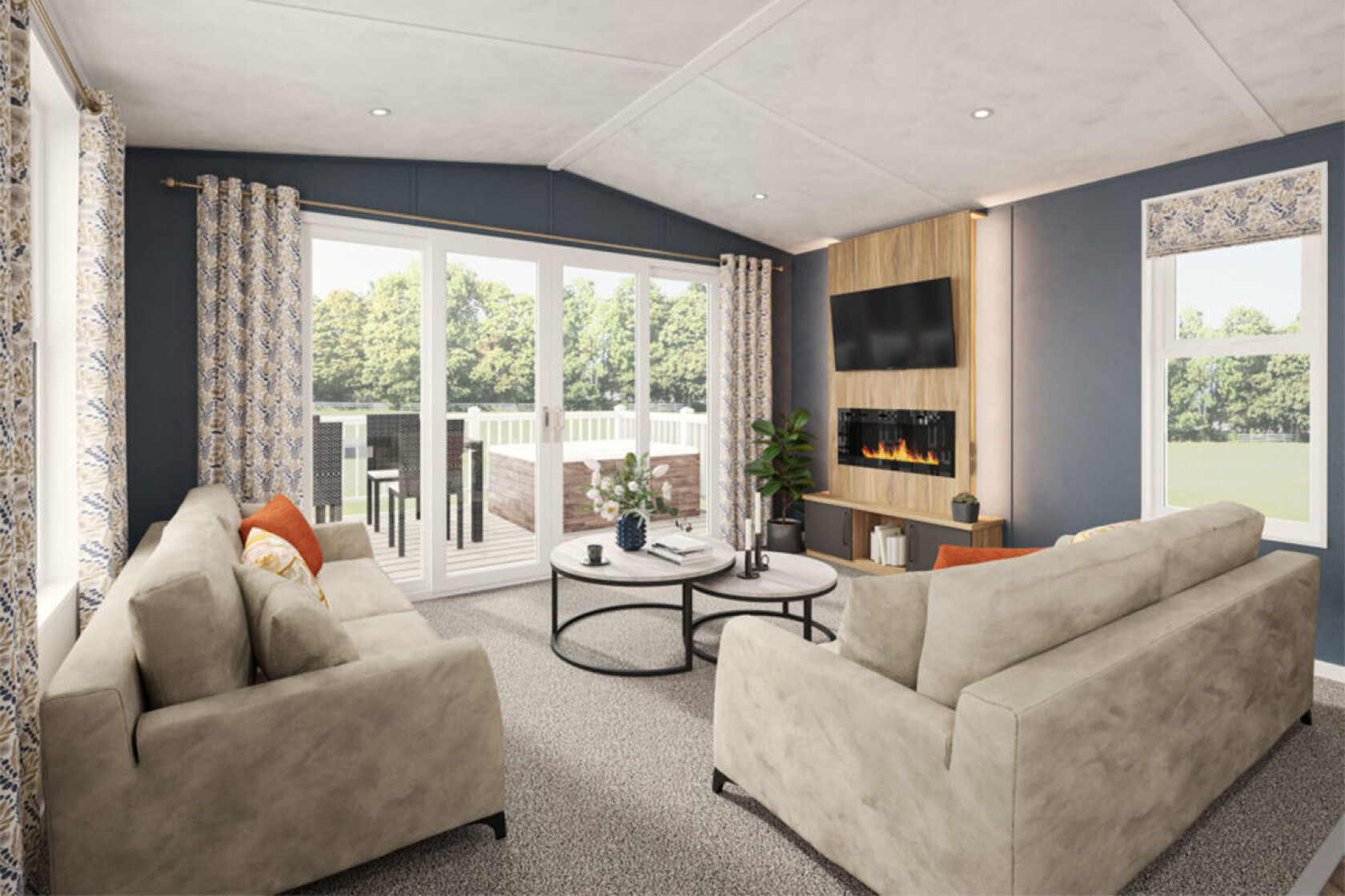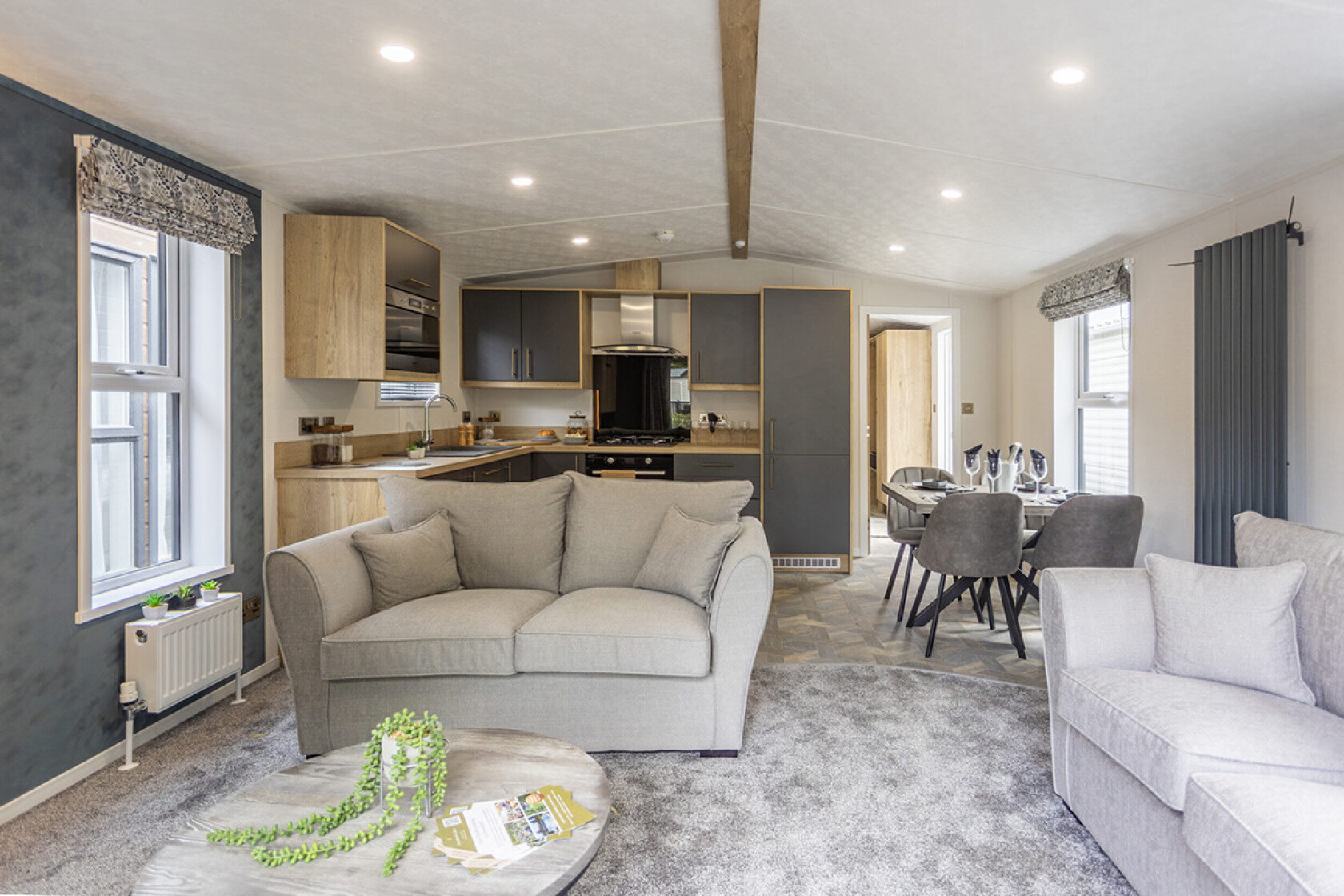 The Norwood is a classic lodge from Beverley Leisure Homes that blends neutral tones with tasteful colour highlights. Expect oak-style finishes, walls with navy accents, soft greys, and a layout that balances calm with character. This looks to appeal if you prefer understated elegance rather than loud statements.