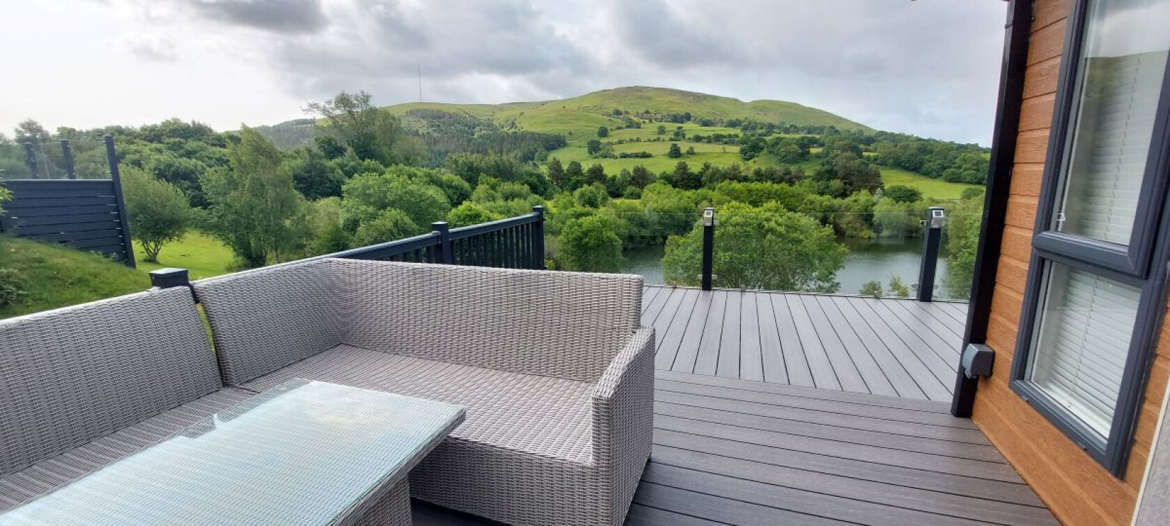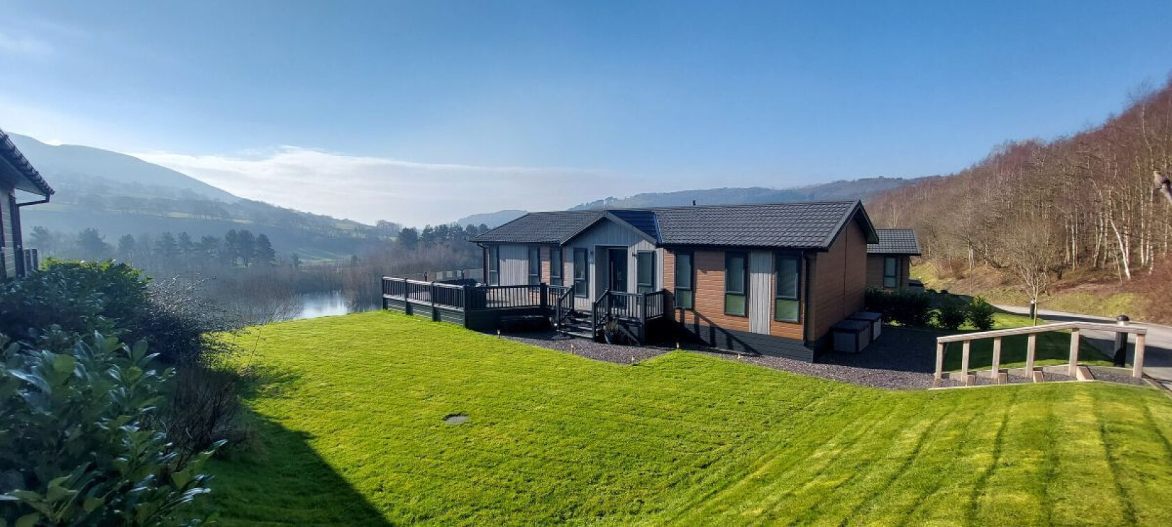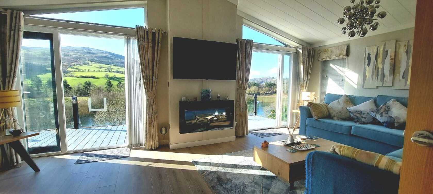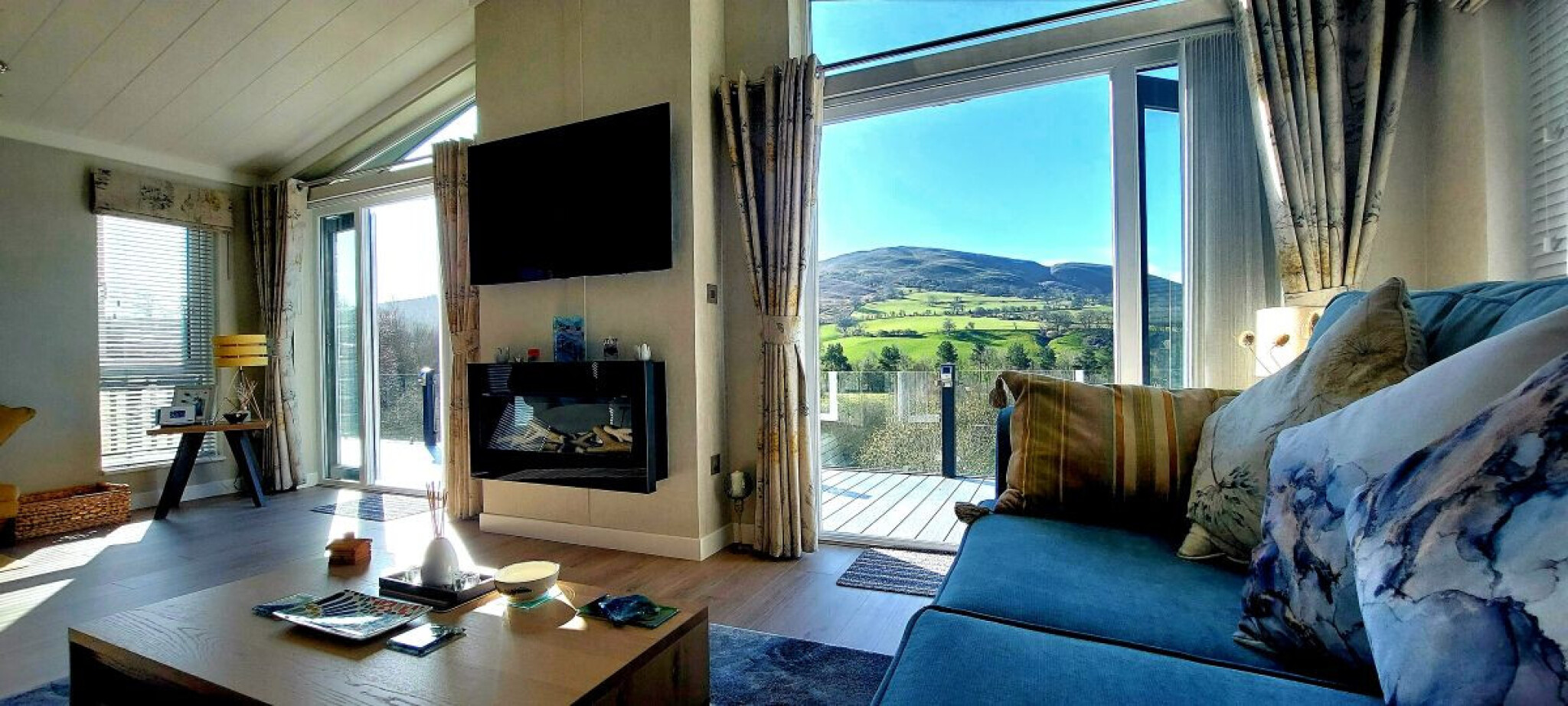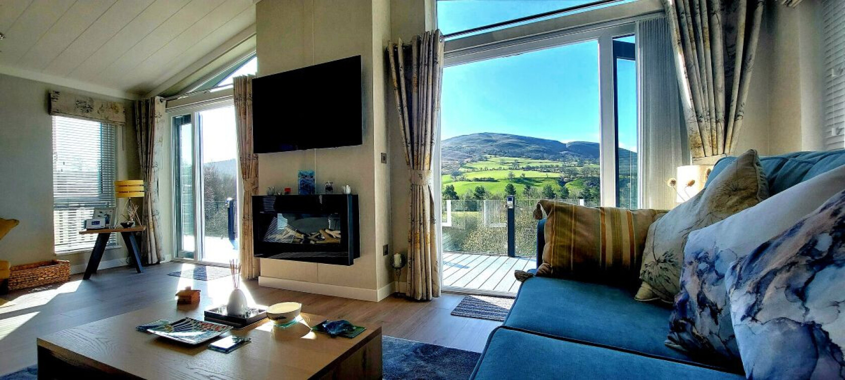 The Pre-Loved Omar Ikon Lodge at Maes Mynan Park offers a luxurious countryside escape with uninterrupted views of lakes, woodland, and the magnificent Clwydian Range in an Area of Outstanding Natural Beauty.