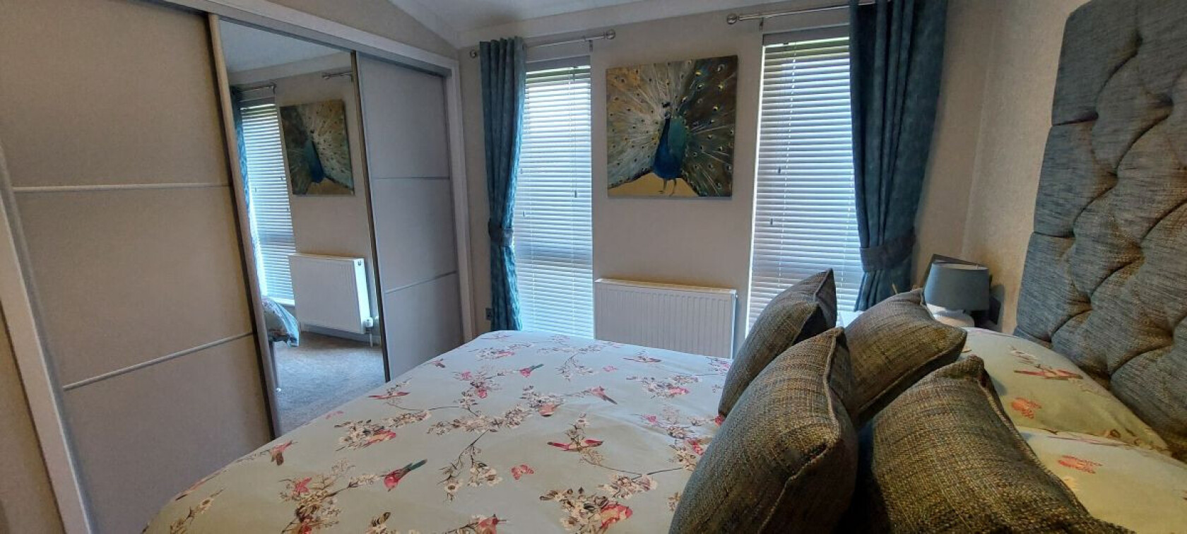 The main bedroom boasts mirrored wardrobes, bedside units, an ensuite shower room, and laundry cupboard, while the second bedroom features twin 3 ft beds and generous storage. With LPG central heating, double glazing, Velux windows, USB charging points, exterior power, and excellent storage throughout, this stylish lodge is as practical as it is beautiful—an ideal rural retreat for a relaxing holiday lifestyle year-round.